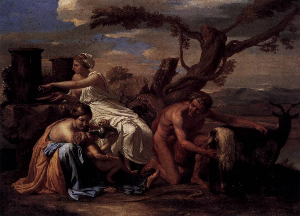 (nella figura un olio del 1638 dove giove bambino viene nutrito dal latte di una capra nel suo esilio lontano dal padre).