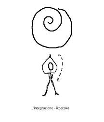 La posizione disegnata è quella di massima espansione della forza, quando inspirata l’aria si apre il diaframma per unire l’energia individuale con l’energia cosmica. Questa energia è in grado di nutrire e curare la persona. In questo modo integra di luce, riparando la griglia energetica che racchiude l’intera unità dell’individuo e che permette di vivere su questo pianeta.