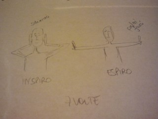 Copri con le mani metà labbro destro con la mano destra e l’altra metà sinistra con la mano sinistra. Inspirando dal naso. Quindi espira buttando le braccia sotto con il palmi fuori ovvero girati come te (pollici esterni o fuori da te).